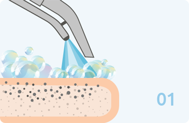 Раствор проникает глубоко в волокна ткани, растворяя пятна, пыль и другие загрязнения.